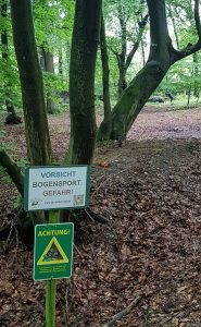 Dieses Waldstück dürfen nur Vereinsmitglieder und „Probeschützen“ mit einem entsprechenden Clubausweis als Bogenschießgelände benutzen!